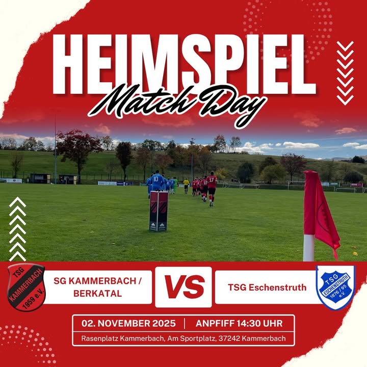 Am kommenden Sonntag steht für unsere Erste das letzte Heimspiel des Jahres an. Um 14:30 Uhr erwarten wir die TSG Eschenstruth, die formstarke Mannschaft konnte in den letzten Spielen, vor allem gegen andere Mannschaften aus den aktuellen Top 5 überzeugen und so den Anschluss an diese wiederherstellen. Zuvor trifft unsere Dritte um 12:30 auf die Zweite Mannschaft des SC Eintracht Germerode und schließt damit die Hinrunde ab. Wir freuen uns über eure Unterstützung ????⚫️⚽️